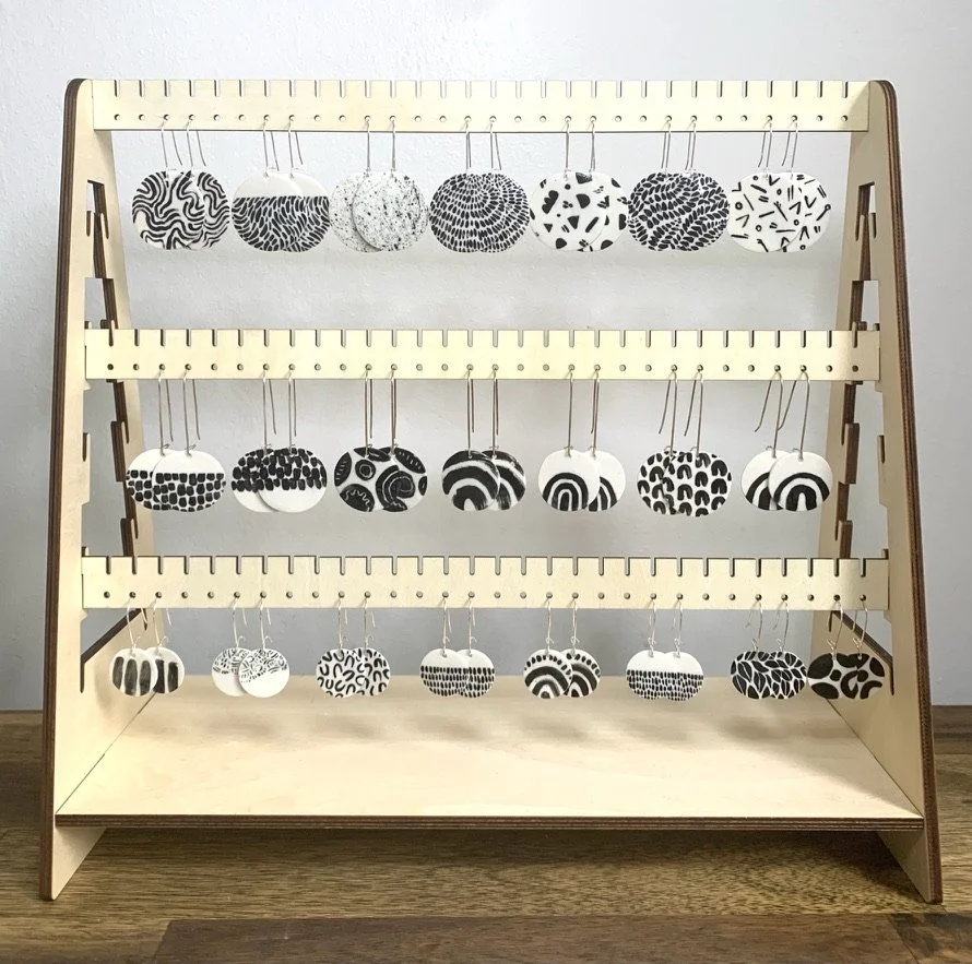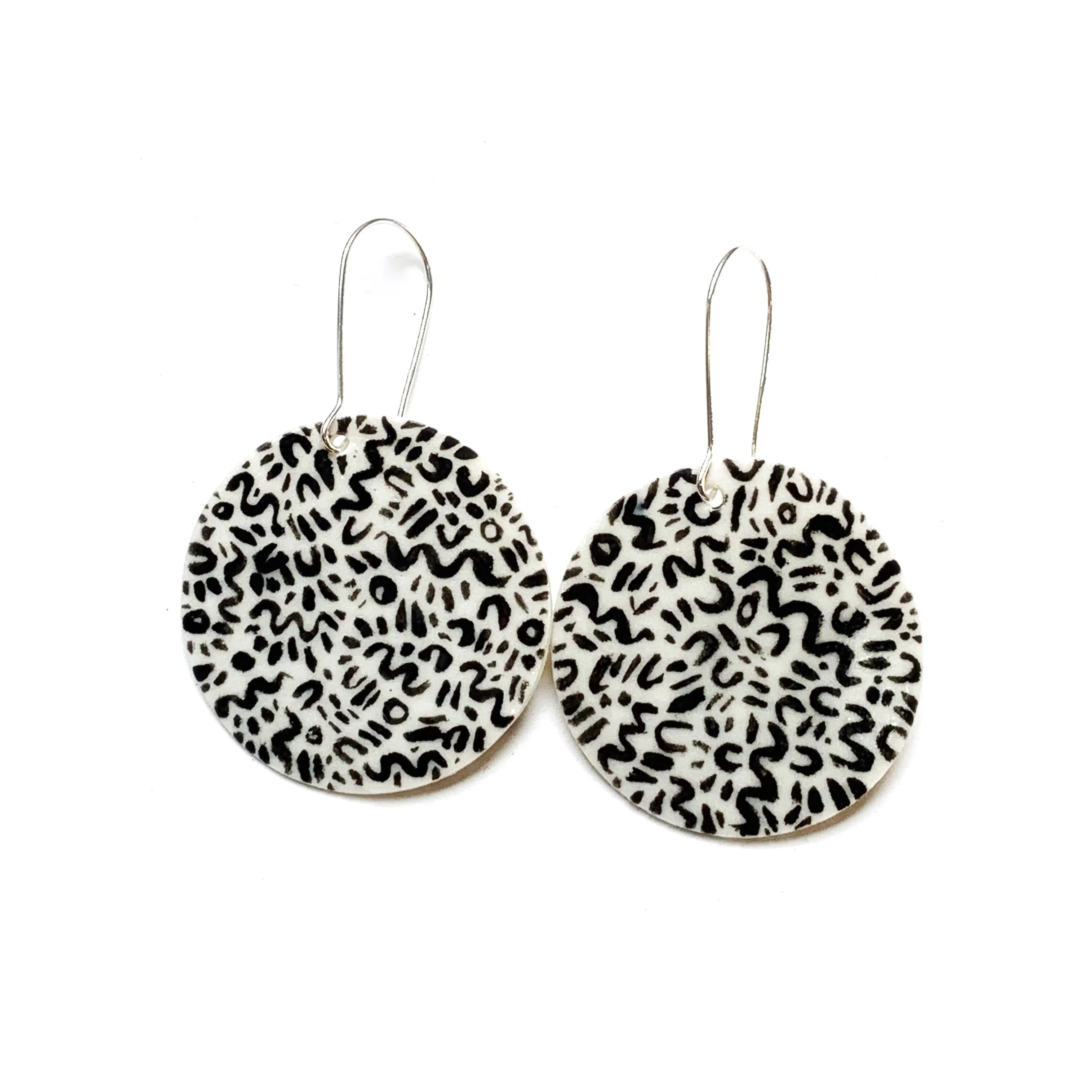 Most Pattern & Patch earring tiles are made from porcelain, which is hand-rolled and sanded by hand to be ultra-thin and lightweight for your ears.