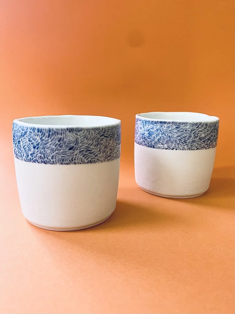 While we don’t recommend using these pieces as mugs, some customers have said they do. A few words of warning if that’s you: please be cautious with the heat from hot liquids on these hand-free pieces, never microwave them, and if your piece becomes broken, cracked or damaged in any way, do not use it.